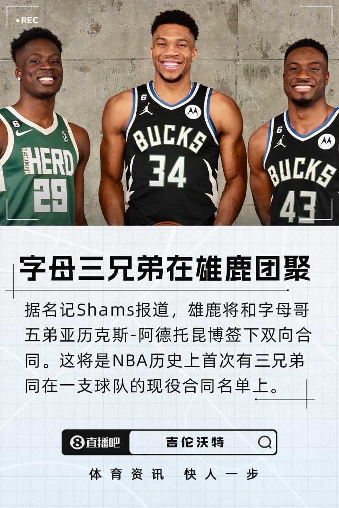 3兄弟团聚创历史!Shams:雄鹿将和字母哥五弟亚历克斯签双向合同